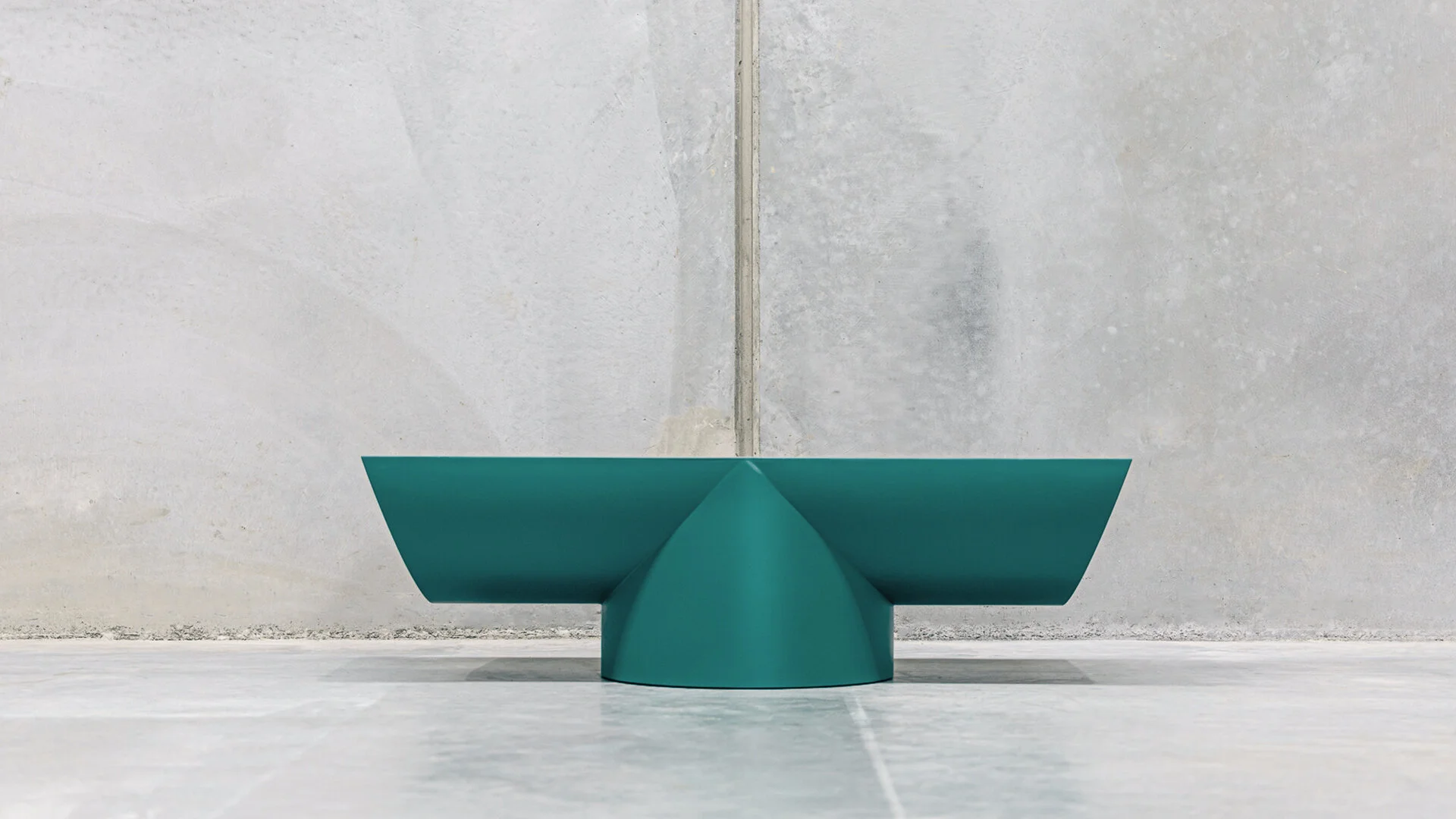 …an archetypal monolithic seating bench with a matching side table consisting of tubular extrusions